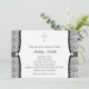Bonito convite batizante rosa e preto. Este batismo moderno e doce, rosa e preto, para bebês, batismo, batizamento, primeira comunhão, confirmação ou outro convite à cerimônia religiosa é facilmente personalizado para o seu evento, simplesmente escolhendo o botão laranja "Personalizar!" para começar a adicionar os detalhes do seu evento, estilo da fonte, tamanho da fonte e cor e texto. Observe que todos os designs de cartas e convites que você encontrará no Zazzle são gráficos impressos sem joias reais, arcos, levantados, gravados em relevo ou peças ou peças adicionadas.