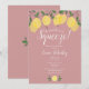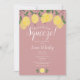 Com limões e folhagens em um fundo rosa poeirento, este convite de chá de noiva fofo pode ser personalizado com as informações do seu evento especial e suas iniciais de monograma no verso. Criado por Thisisnotme©