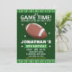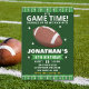 "Score points with this cute, custom-designed football-themed birthday party design! Shaped like a football field, it's perfect for young fans who love the game. With vibrant field details and space for party information, this fun design sets the tone for an unforgettable day of fun, games, and touchdowns. It's perfect for any age and is sure to excite little athletes and fans alike!"