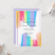 Convite de casamento aquarela arco-íris lindo com traços de pintura artísticos e cheios de cores vibrantes. Esses convites coloridos são perfeitos para um casal artístico ou um casamento gay e lésbico. O cartão alegre é acentuado por uma linda parte de trás lavanda para uma cerimônia de verão.
