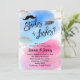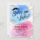 Este convite revela uma vibrante cor-de-água azul e rosa, com sotaques dourados e pincéis de pincel dourado. Escolha entre "staches" ou "chicotadas" para revelar o gênero do seu pequeno. Perfeito para uma festa reveladora de na moda e diversão.