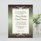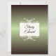Anúncios verdes e mais brilhantes, com efeito brilhante para este elegante convite para o casamento. Coloque a noiva e os nomes do noivo na frente do fazer menos formal e, do outro lado, as informações regulares ou habituais do casamento. Faça o triplo para verificar suas datas e texto.