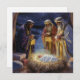 Share the true meaning of Christmas with this stunning flat holiday card featuring a traditional Nativity scene illustration. This artistic design depicts the Three Wise Men offering gifts to the newborn baby in the manger under a bright Star of Bethlehem in a peaceful, rustic stable. The deep colors, starry night sky, and dramatic light create a reverent, evocative, and timeless image. This card is an elegant and meaningful way to send Christmas greetings and wishes of peace and joy for the season.
