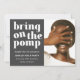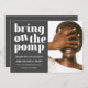 Esta cinza, branca, moderna e divertida, "traga a pompa, apesar das circunstâncias", convite para a festa de formatura de 2021, apresenta uma foto e uma tipografia ousada.