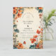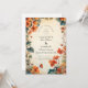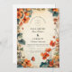 Celebre seu dia especial com este romântico design de outono com flores à direita de aquarela em tons cor de laranja quente. Com um fundo de colheita suave e detalhes botânicos, é perfeito para um elegante casamento de outono. Todo texto é totalmente personalizável.