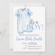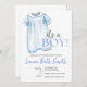 Comece sua festa com o convite perfeito. Este clássico traje de bolha anunciando um menino é uma maneira encantadora de celebrar a futura mamãe.