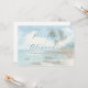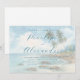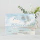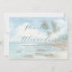 This wedding invitation features a serene beach scene with soft pastel colors, creating a tranquil and inviting atmosphere. The design includes palm trees and rocky shores, enhancing the tropical vibe, while elegant script typography highlights the names of the couple. The watercolor art technique adds a delicate and dreamy quality to the layout, which is balanced with clean serif fonts for event details. Perfect for a sophisticated gathering, this invitation conveys a mood of elegance and relaxation, ideal for celebrating love by the seaside.