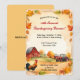 Este convite editável e lindo apresenta os detalhes do evento rodeados por uma moldura de folhas de outono coloridas, um galo, trator e fazenda. No verso, há um campo editável para informações adicionais. O texto em ambos os lados é editável, então vá em frente e altere os detalhes, bem como o tamanho e a cor do estilo da fonte. A cor do fundo no verso também pode ser alterada. Este convite pode ser usado para o Dia de Ação de Graças, aniversários, nascimentos, noivados ou qualquer evento com tema outonal ou rural/rústico!