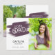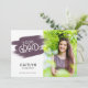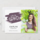 Este convite de festa de formatura oferece espaço para 2 fotos e texto personalizado para os detalhes da sua festa. O design é acentuado com pinceladas de tinta roxa escura na frente e no verso.