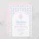 Celebre com estilo este convite de aniversário elegante Trellis de Hortênsia Verde Rosa com Laço Azul! Com estilo coquete e grandmillenial, apresentando um delicado padrão de treliça, bolo vintage, fundo de faixa dupla e laços rosa suaves, este convite é perfeito para uma festa de aniversário de uma menina, chá de bebê, casamento ou celebração no jardim. Personalizável com nome, idade, evento e detalhes da festa para um toque pessoal.