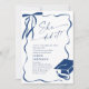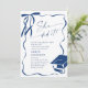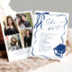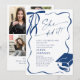 Convite Trendy Blue Bow Ribbon 4 PHOTO Graduation Party