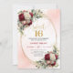 Convite Trendy Boho Deep Red Gold Floral 16th Birthday