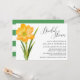 Convites de chá de panela de estilo rústico com flores de croco amarelas e padrão listrado branco e verde no verso da carta. Estes convites são perfeitos para um país, uma fazenda, uma festa de jardim, um quintal ou um chá de casamento de estilo.