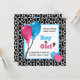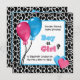 É um menino ou uma menina? Envie este gênero divertido revelar convites de festas com uma fronteira de impressão de girafa branca e preta e um balão azul legal para um garoto ao lado de um balão rosado feminino para uma garota e embelezado com corações rosas e azuis fofinhos. Personalize estes convites para chás de fraldas de impressão de animais, acrescentando o nome da Mãe a ser.