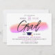 Convite Trendy Pink Purple Grad Cap Bold Script Watercolor