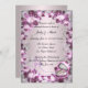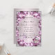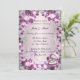 Bonito flores roxas sobre fundo roxo. Adicione um toque especial enviando convites para o evento de janto que antecede seu grande dia. Este bonito convite para jantas de ensaio é divertido para todos os convidados. Personalize a placa alterando o texto nos campos fornecidos frente e verso. Você pode alterar o estilo, o tamanho e a cor da fonte, bem como o tipo e o estilo do papel.
