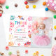 Convite Três é uma foto de aniversário de 3 anos doce de R