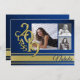 Convite Três Foto da Graduação da Varsity 2019 Azul e Dour