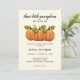 Três Pequenos Bombeiros Estão A Caminho De Tripletes, Chá de fraldas Moderno, Sexo Neutro. A design apresenta três abóboras laranja sobre um fundo de marfim com a escrita tipografia negra. Um simples design minimalista e fofo para o seu chá de fraldas de outono triplica. Você pode personalizá-la com suas informações ou editá-la ainda mais na ferramenta design.