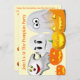 Três pequenos fantasmas se divertindo no dia das bruxas.
