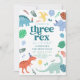Convite Três Rex Blue Boy Dinosaur Boho aniversário de 3 a