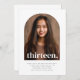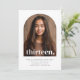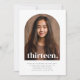 Um simples convite de Aniversário para 13, com sua própria foto em forma de arco e as palavras 'treze' sobre o topo.