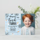 Trick or three! A perfect blend of blue, white, and black, with cute ghost motifs for a Spooktacular 3rd Birthday. This invitation sets the tone for a charmingly spooky celebration that's all about our little one's big milestone. The playful design captures the essence of Halloween while adding a touch of adorable to the festivities. Get ready to invite friends and family to a memorable day filled with smiles, costumes, and delightful surprises.