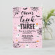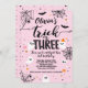 Trick or three! A perfect blend of pink, white, and black, with cute ghost motifs for a Spooktacular 3rd Birthday. This invitation sets the tone for a charmingly spooky celebration that's all about our little one's big milestone. The playful design captures the essence of Halloween while adding a touch of adorable to the festivities. Get ready to invite friends and family to a memorable day filled with smiles, costumes, and delightful surprises.