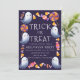 Junte todos com este Trick ou Trate Fantasmas Cute Candy Halloween. Esta design apresenta ilustrações de doces de Halloween e fantasmas bonitos contra um fundo roxo escuro. Você pode até personalizar este convite para seu gosto.