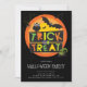 Este convite da festa de Halloween captura o espírito da época com um tema lúdico de "Trick or Treat", perfeito para convidar amigos e família a uma reunião festiva. O design apresenta cores vibrantes e gráficos caprichosos que evocam o entusiasmo do Dia das Bruxas, fazer-o como uma escolha ideal para crianças e adultos. Com espaço para detalhes essenciais como data, hora e local, este convite define o tom para uma celebração memorável cheia de diversão, figurinos e guloseimas.