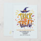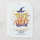 Um convite divertido para o Halloween com um chapéu de bruxa, doces e letras grandes que soletram TRICK OU TREAT.<a href='https://www.freepik.com/free-vector/trick-or-treat-halloween-lettering-design_2942827.htm'>Desenhado por Freepik</a>). <br/>() O cartão é fácil de personalizar com seu texto, fonte e cor da fonte.<br/>() Não exatamente o que você está procurando? Todos os nossos produtos podem ser personalizados para atender às suas necessidades sem custos adicionais.<br/>() Basta entrar em contato conosco em askcottonlamb@gmail.com.<br/>() Coordenando os produtos disponíveis: Apenas nos pergunte!
