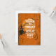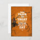 Uma coruja preta, fofa, com um chapéu pontiagudo, senta-se num membro castanho, sem folhas, enquanto morcegos da silhueta voam sobre a lua amarela. Um fundo laranja, grunhento torna isso assustador e assustador, mas divertido.