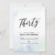 Celebre seu dia especial com este simples convite de festas mínimo de aniversário de 30 anos. Este design apresenta um script de na moda com a letra "Trinta" com um fundo de lavagem de cor d'água com pasta azul e menta. Mais convites para aniversários adultos e material de festa estão disponíveis no meu compro BaraBomDesign.