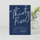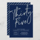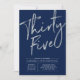 Celebre seu dia especial com este simples convite de aniversário 35º na moda. Este design apresenta um script chic prata push "Trinta e Cinco" com um layout limpo em um fundo azul marinho. Você pode personalizar o texto e a cor do plano de fundo. Mais designs disponíveis no meu compro BaraBomDesign.