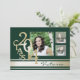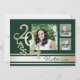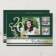 Convite para fotos da graduação da banda verde-escura e dourada para 2014 com espaço para três fotos favoritas. Personalize para caras ou meninas com um nome na frente, na mesma cor verde-escura do convite, e adicione todos os seus anúncios de graduação e detalhes da festa no verso em texto branco. Altere as fontes conforme desejar.