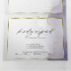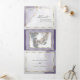 Roxo empoeirado e dourado com suave efeito marmorizado em aquarela e destaques dourados glitzy - cada seção destacada com uma sobreposição emoldurada em branco translúcido dourado, na parte central da frente está sua foto acentuada com uma moldura dourada e atrás da sobreposição branca translúcida para um apelo esotérico, um belo design abstrato moderno para um convite de casamento completo, incluindo uma resposta de escolha de refeição destacável pré-endereçada para que seus convidados possam facilmente enviar de volta - um convite de casamento impressionante tudo-em-um -
