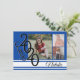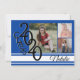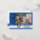 Convite azul, branco e preto 2020 para banda varsity. Três fotos podem ser adicionadas a este convite festivo de graduação da Classe 2020 ou anúncio em azul. Personalize o texto no ajustado das suas necessidades.