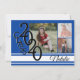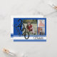 Convite azul, branco e preto 2020 para banda varsity. Três fotos podem ser adicionadas a este convite festivo de graduação da Classe 2020 ou anúncio em azul. Personalize o texto no ajustado das suas necessidades.