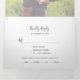 Este convite de casamento de fotos desbotadas minimalista é perfeito para um casamento simples. A design romântica moderna apresenta a tipografia negra clássica, emparelhada com uma caligrafia rústica, mas elegante, com estilo antigo, com letra de mão. Personalize com duas fotos de noivado. Sua suíte de casamento inteira em um! Este convite dobrado inclui seu convite de casamento, detalhes, uma foto de noivado, e um cartão de RSVP endereçado a si próprio que seus convidados cortaram e enviaram para você. Personalize o cobrir frontal com seus nomes e data do casamento.