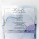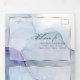 Salpico etéreo de manchas de tinta alcoólica em tons de aqua impressionante, violeta roxo e lilás pálido - cada seção destacada com uma sobreposição branca translúcida emoldurada em dourado cinzelado, na frente central está sua foto acentuada com uma moldura dupla dourada e por trás da sobreposição branca translúcida para um apelo esotérico um belo design abstrato moderno para um convite de casamento completo, incluindo escolha de refeição destacável pré-endereçada com resposta para que seus convidados possam facilmente devolver por correio - um convite de casamento impressionante tudo-em-um -