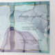 Salpico etéreo de manchas de tinta alcoólica em tons de azul oceano, verde-azulado e roxo ametista rico - cada seção destacada com uma sobreposição emoldurada em ouro branco translúcido, na parte central frontal está sua foto acentuada com uma moldura dupla dourada e por trás da sobreposição branca translúcida para um apelo esotérico - dentro da capa há uma segunda foto de sua escolha - o convite de casamento é central e a resposta destacável está na última seção. Este convite é projetado para ser enviado por correio, pois é dobrado sem envelope - Este lindo design abstrato moderno é perfeito para um convite de casamento completo, incluindo resposta de escolha de refeição pré-endereçada destacável para que seus convidados possam facilmente enviar de volta - um convite de casamento impressionante tudo-em-um.