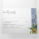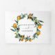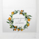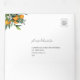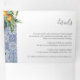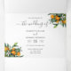 Um convite triplo de 3 em 1 casamento elegante com laranjas e decoração verde e azulejos azuis. Ele inclui detalhes (acomodação e informações) e cartão postal rsvp para que seus convidados cortem e enviem de volta.