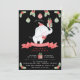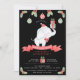 Este belo convite para troca de presentes de Elefante Branco apresenta um presente de equilíbrio de elefantes com aquarelas no seu tronco. Abaixo do elefante está uma faixa vermelha que diz "Elefante Branco" em uma letra branca. A metade inferior do convite tem todos os detalhes da festa em branco sobre fundo preto. O verso do convite tem um fundo vermelho de coordenação.