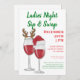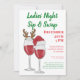 Reúna as garotas para uma noite festiva de diversão! Este convite de Natal chico apresenta óculos de vinho tinto tocado com um lindo chapéu de Papai Noel e orelhas de renas — a maneira perfeita de estabelecer o clima para riso, vinho e alegria de férias. Ideal para noites de Natal, trocas de vinho ou encontros de férias confortáveis com amigos. Personalize com seus detalhes de evento para torná-lo exclusivamente seu.