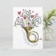 Este design apresenta uma trompa francesa brilhante com pombas brancas, arco-íris pastel e corações vermelhos saindo do instrumento.
