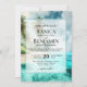 Invite your friends and family to share in your joy on your wedding day with this beautiful invitation. The beautiful design features your names prominently displayed on a watercolor background landscape of a pristine tropical beach with palm trees and ocean waters in shades of teal, turquoise, aqua, tan, blue, and green. The text features elegant script calligraphy accents with room for the wedding date, venue, location, and all of the other important information. Perfect for a coastal or island destination wedding.