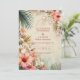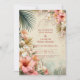 Celebrate your wedding day with timeless tropical elegance. This romantic design features lush hibiscus blooms, soft palm leaves, and painterly botanical details layered over a warm, vintage-inspired background. The refined typography and airy island palette create a sophisticated destination wedding feel that’s perfect for coastal venues, tropical resorts, or summer celebrations.