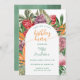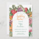 Flores tropicais e folhagem rodeiam uma porta arcaica para se divertir. Cores de folhagem verde abundante com flores laranja e rosa criam um humor empolgante para a celebração de um evento de aniversário de luau. A inscrição e o reverso estão em um verde tropical profundo enquanto o evento é destacado em laranja de Mango. Personalize todo o texto.
