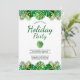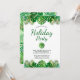 Este design moderno, chic, apresenta uma exuberante folhagem de floresta tropical da praia, incluindo frondes de palma e folhas filodendrónicas no topo e no fundo, na frente, cobertas com luzes de férias multicoloridas. No centro estão os detalhes personalizáveis para seu evento especial na tipografia popular, incluindo as fontes de script e sans serif. A parte traseira da placa apresenta a mesma folhagem e luzes em um fundo verde-claro. Você pode personalizar este item alterando o texto.