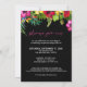 Este belo destino de praia tropical recem casados anúncio de casamento e convite de recepção mostra as palavras, "nós amarramos o nó" com elementos florais elegantes de aquarela em pinks, amarelos, azuis e branco, um papagaio tropical, e verde em fundo preto e com letra de mão rosa tenra. Inclua um RSVP neste anúncio para receber a resposta de seus convidados para aqueles que não têm Internet e não podem responder através do seu site de casamento. Fácil de personalizar com suas próprias informações de recepção de casamento. Isso é perfeito para a praia ou a recepção de casamento tropical ou para o casal que fugiu num destino de casamento tropical.